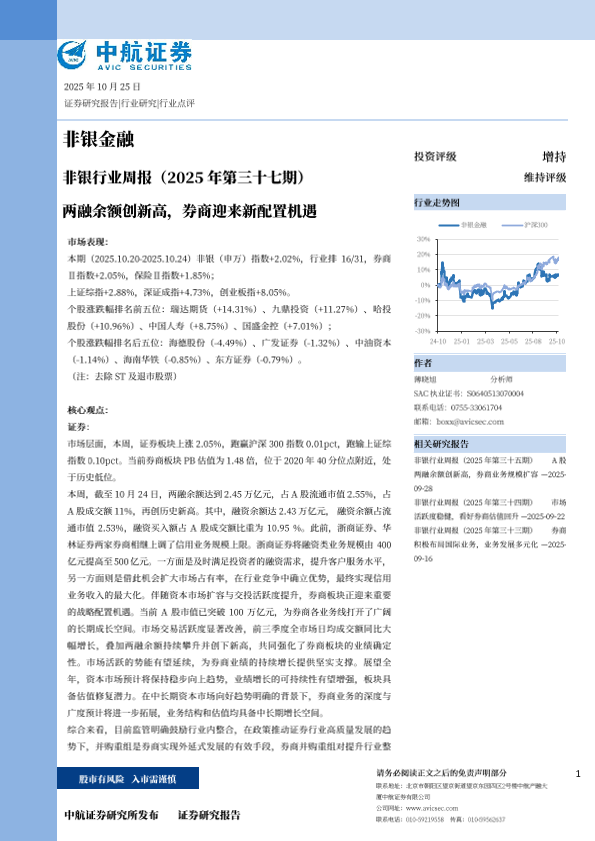 【中航证券】【202510】非银行业周报(2025年第三十七期):两融余额创新高,券商迎来新配置机遇-10页