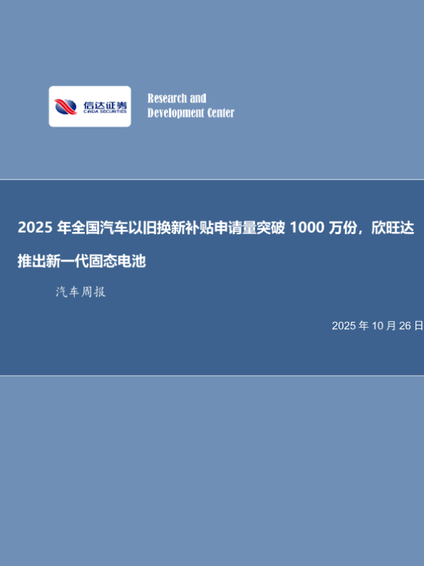 【信达证券】【202510】2025年全国汽车以旧换新补贴申请量突破1000万份,欣旺达推出新一代固态电池-11页
