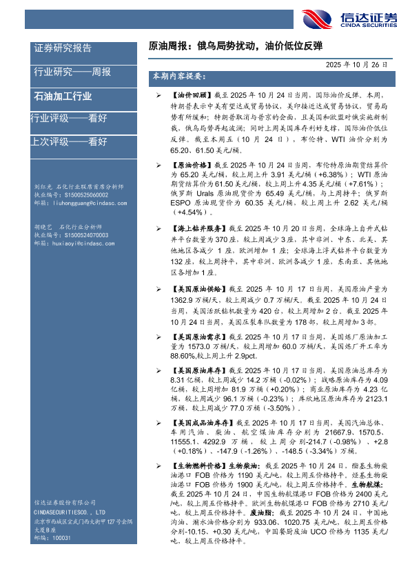 【信达证券】【202510】原油周报:俄乌局势扰动,油价低位反弹-29页