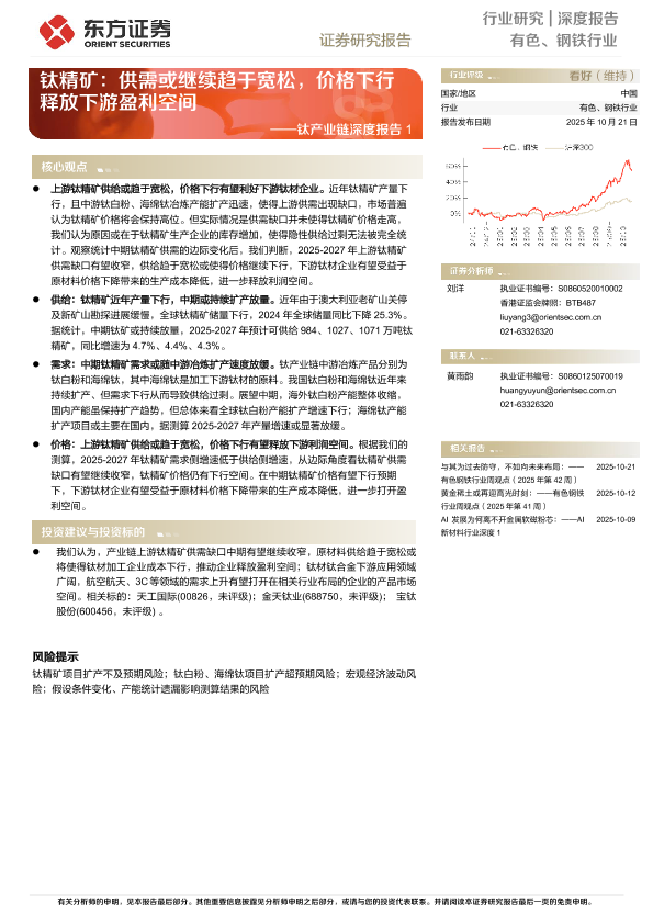 钛精矿 价格走势 原材料成本 下游盈利空间 供需分析