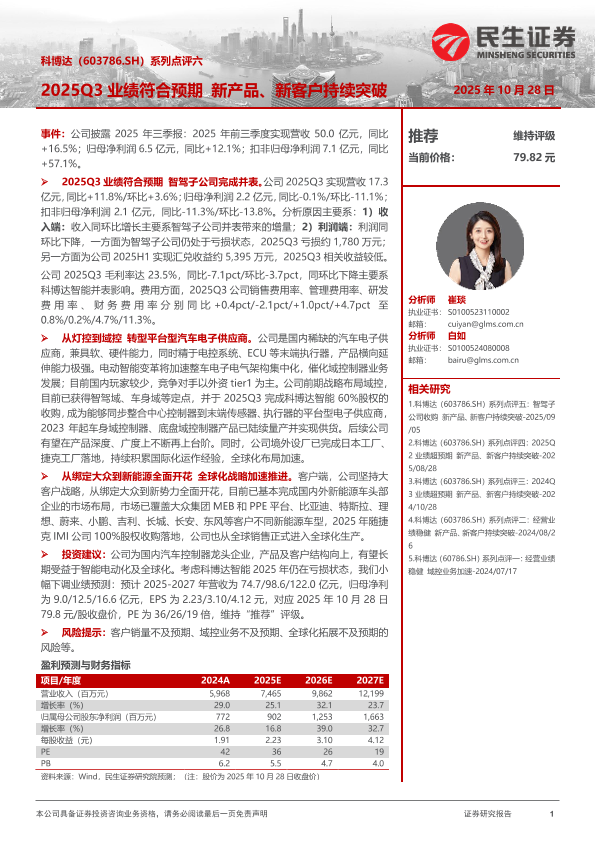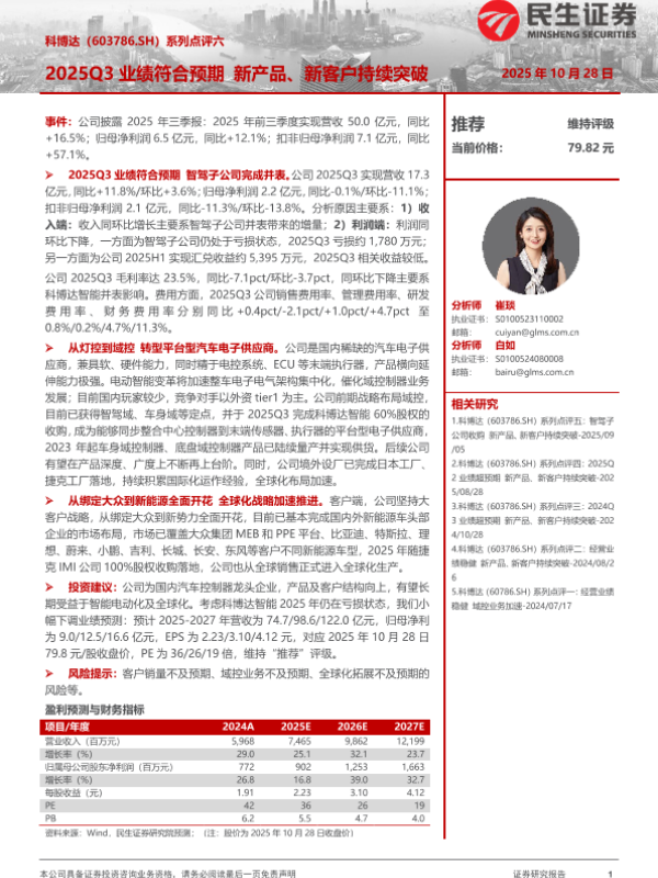 【民生证券】【202510】系列点评六:2025Q3业绩符合预期 新产品、新客户持续突破-3页