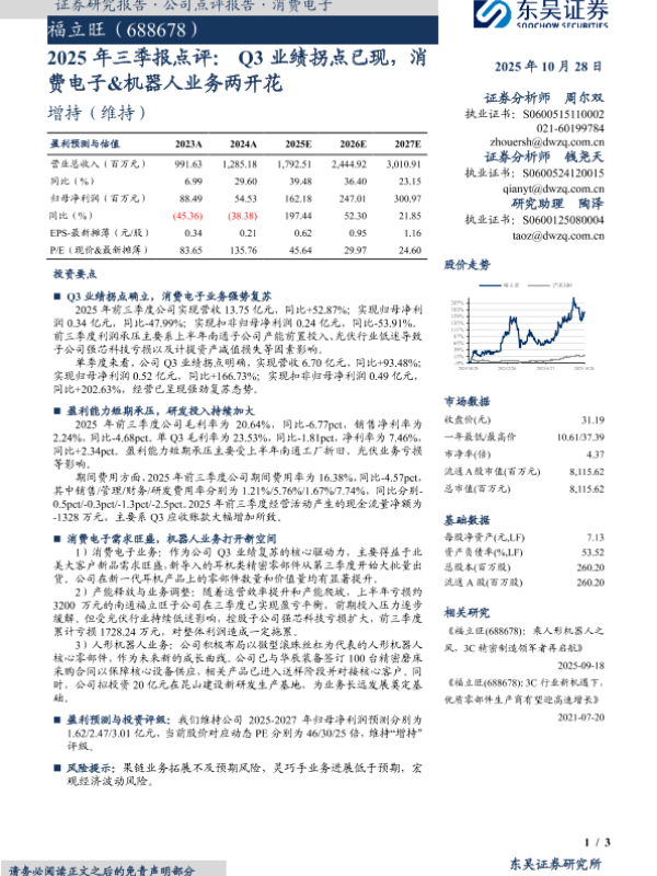 【东吴证券】【202510】2025年三季报点评:Q3业绩拐点已现,消费电子&机器人业务两开花-3页