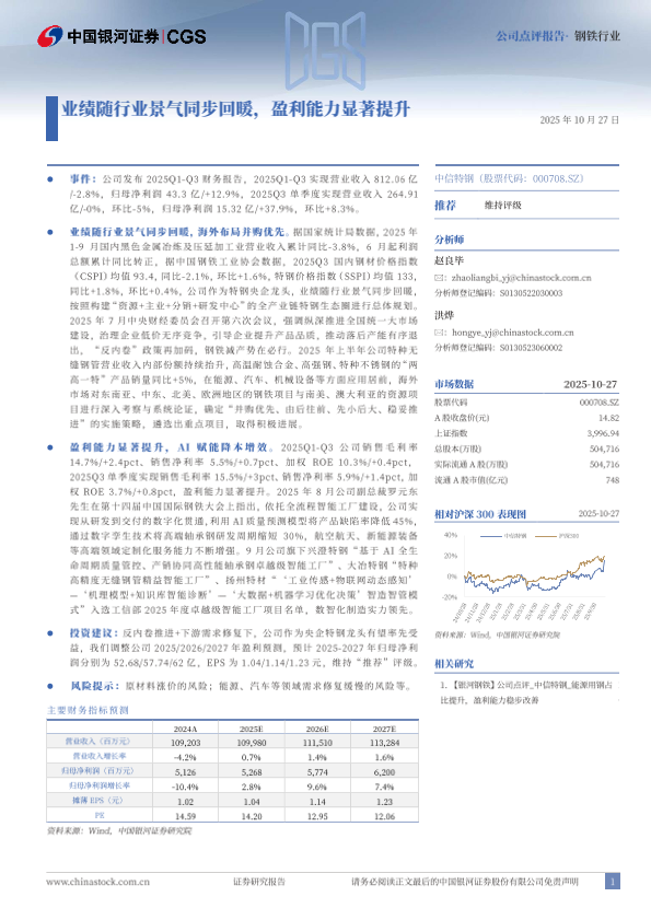 行业复苏 特钢 智能制造 并购布局 盈利能力