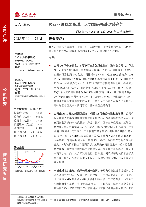 【东莞证券】【202510】通富微电(002156.SZ)2025年三季报点评-4页