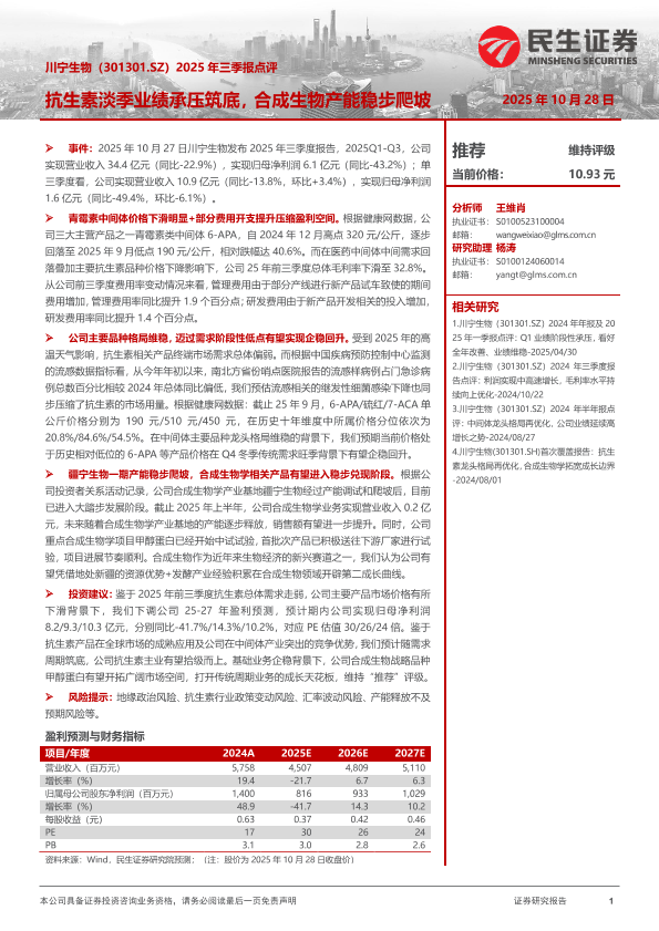 【民生证券】【202510】川宁生物(301301.SZ)2025年三季报点评-3页