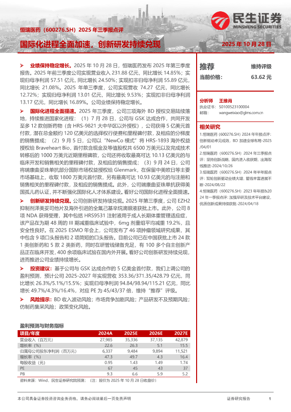 【民生证券】【202510】恒瑞医药(600276.SH)2025年三季报点评-3页