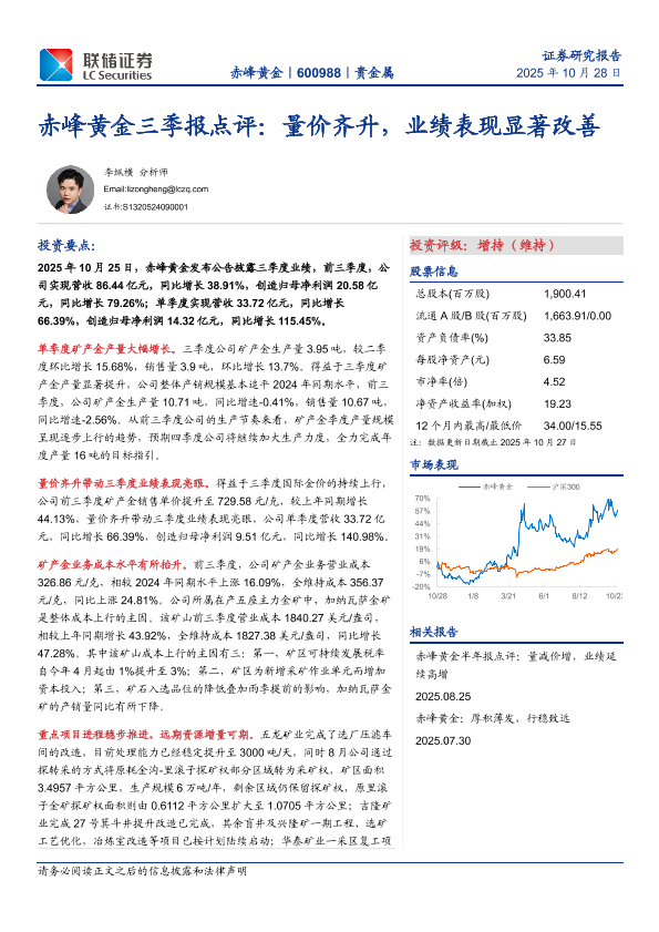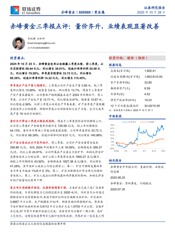 【联储证券】【202510】赤峰黄金三季报点评:量价齐升,业绩表现显著改善-7页