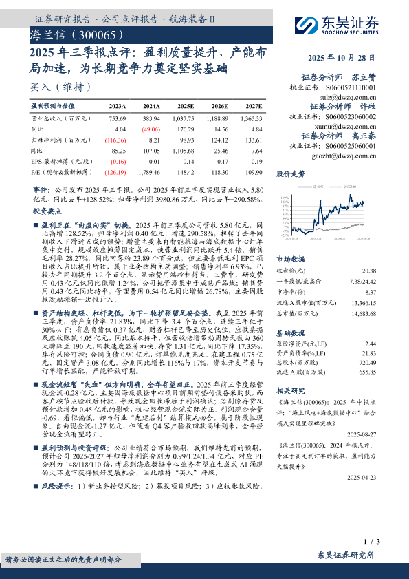 产能布局 三季报 盈利质量 海兰信 海底数据中心