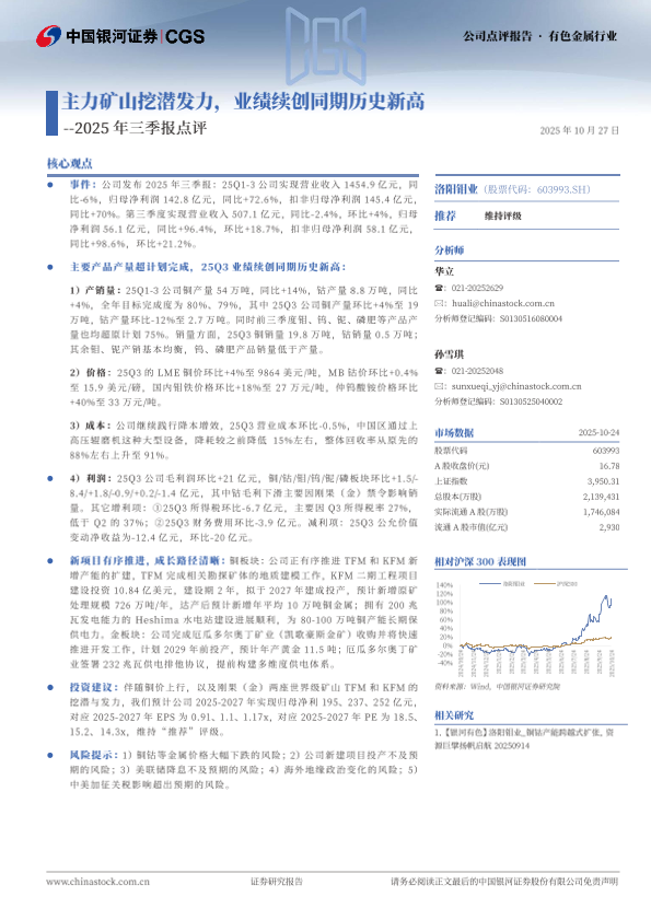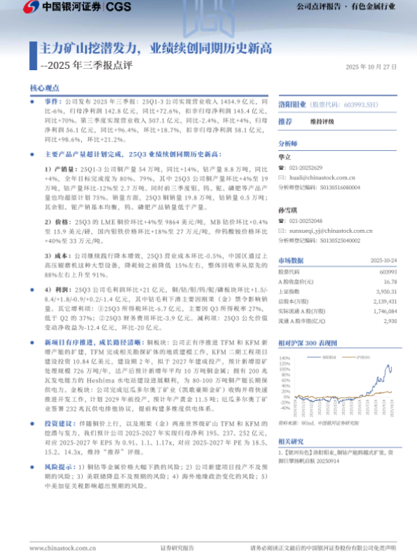 【银河证券】【202510】主力矿山挖潜发力,业绩续创同期历史新高--2025年三季报点评-4页