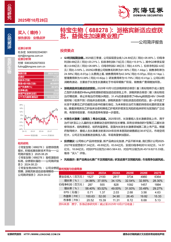 【东海证券】【202510】特宝生物(688278):派格宾新适应症获批,益佩生加速商业推广——公司简评报告-3页