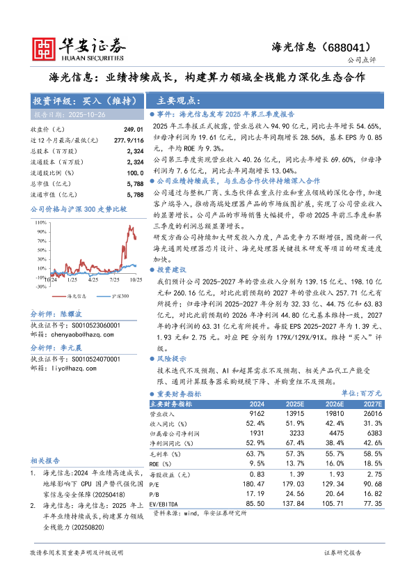 【华安证券】【202510】海光信息:业绩持续成长,构建算力领域全栈能力深化生态合作-3页