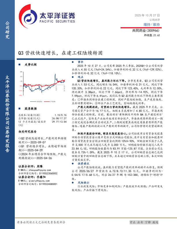 【太平洋证券】【202510】Q3营收快速增长,在建工程陆续转固-5页