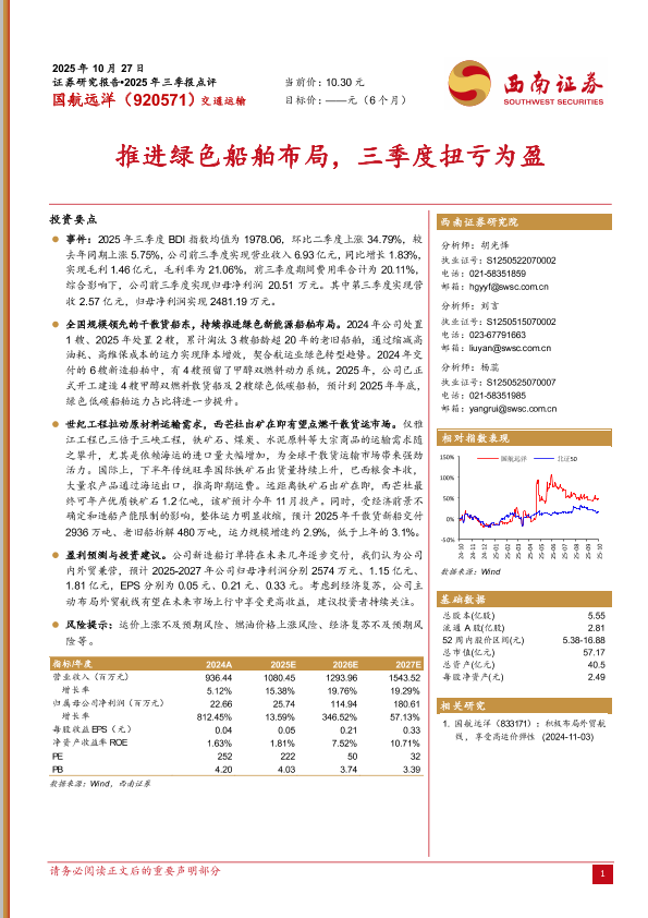 【西南证券】【202510】推进绿色船舶布局,三季度扭亏为盈-6页