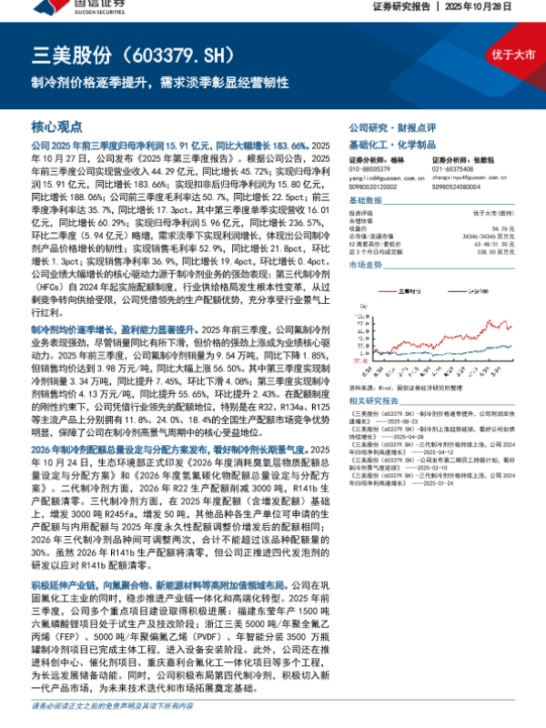 【国信证券】【202510】制冷剂价格逐季提升,需求淡季彰显经营韧性-9页
