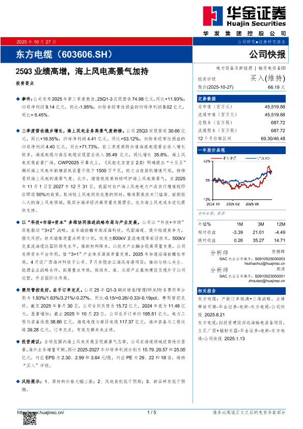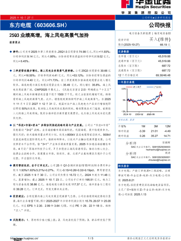 【华金证券】【202510】25Q3业绩高增,海上风电高景气加持-5页