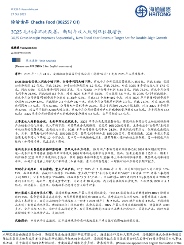 【海通国际】【202510】3Q25毛利率环比改善,新财年收入规划双位数增长-8页