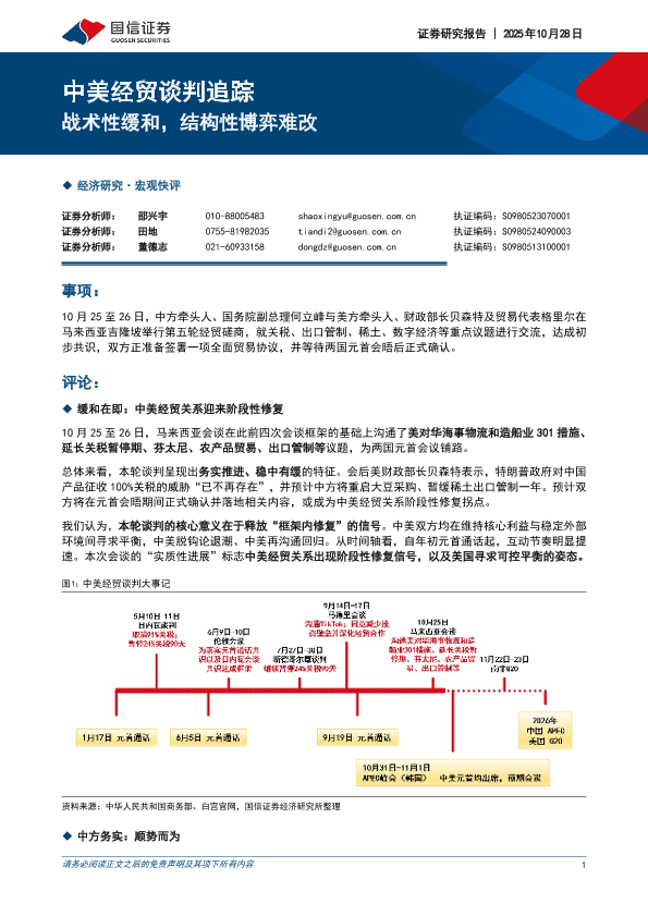 【国信证券】【202510】中美经贸谈判追踪:战术性缓和,结构性博弈难改-6页