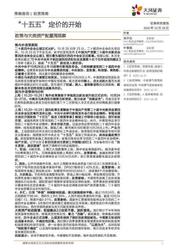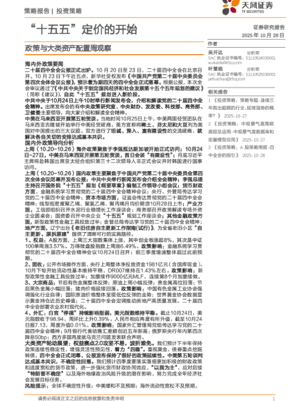 【天风证券】【202510】政策与大类资产配置周观察:“十五五”定价的开始-23页