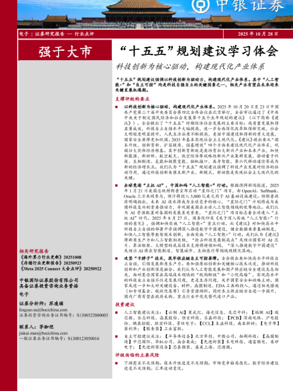 【中银证券】【202510】“十五五”规划建议学习体会-科技创新为核心驱动,构建现代化产业体系-3页