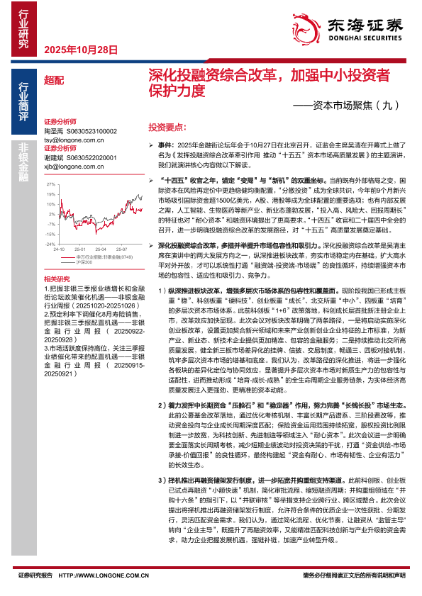 【东海证券】【202510】深化投融资综合改革,加强中小投资者保护力度——资本市场聚焦(九)-3页