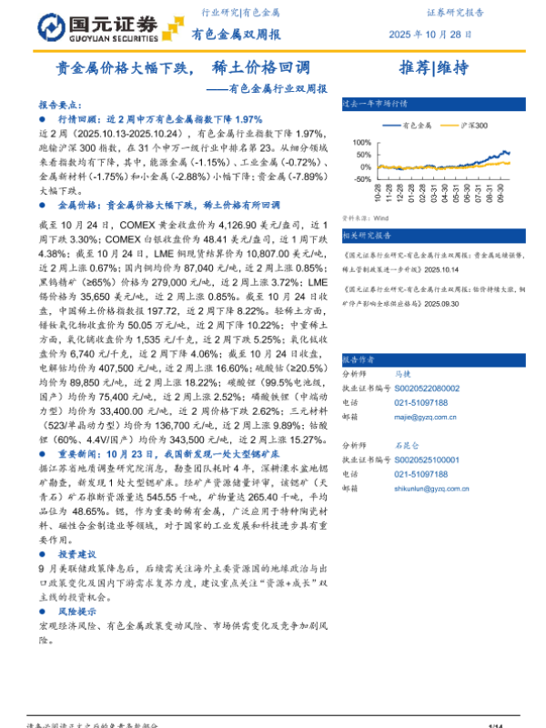 【国元证券】【202510】有色金属双周报 2025年 10月 28日-14页
