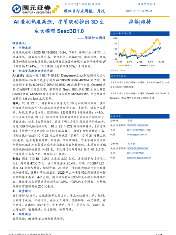 【国元证券】【202510】AI漫剧热度高涨,字节跳动推出3D生成大模型Seed3D1.0-14页