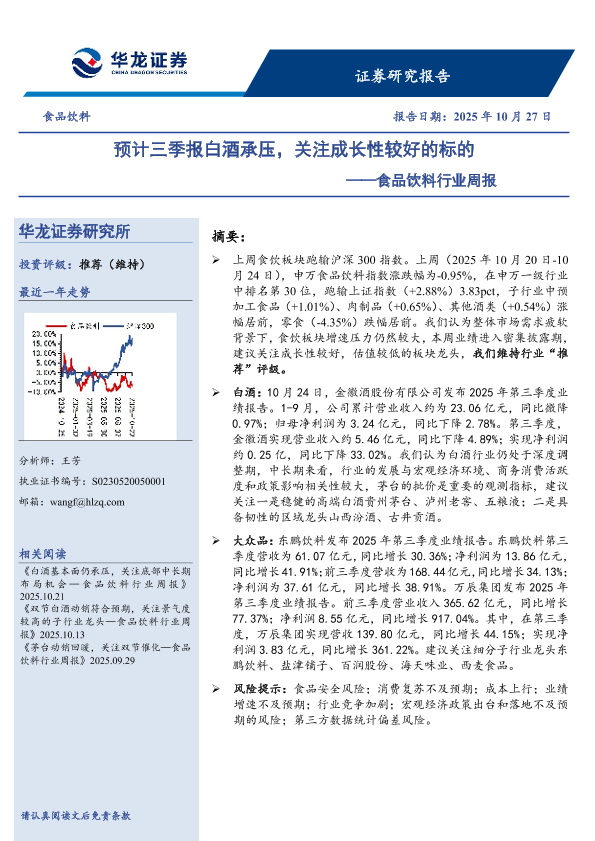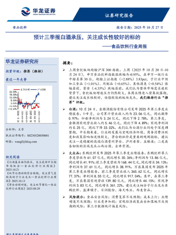 【华龙证券】【202510】预计三季报白酒承压,关注成长性较好的标的——食品饮料行业周报-10页