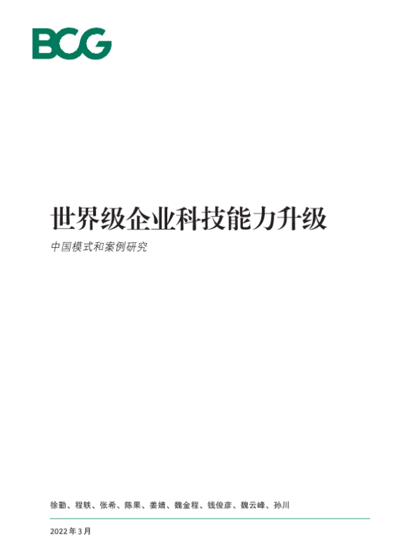 【波士顿咨询公司】【202203】世界级企业科技能力升级:中国模式和案例研究-24页