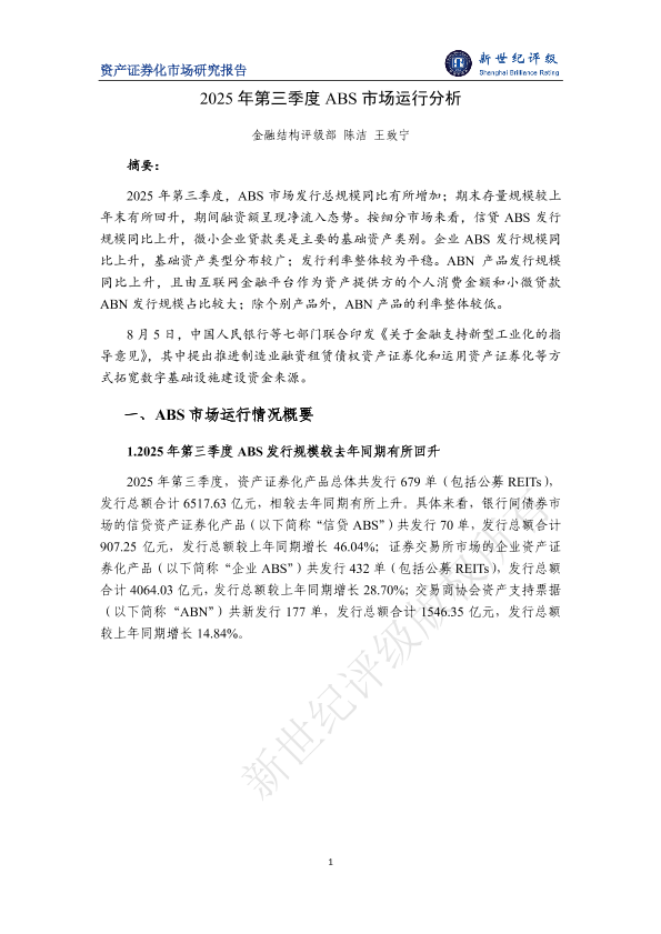 【金融结构评级部陈洁王致宁】【2025】2025年第三季度 ABS市场运行分析-8页