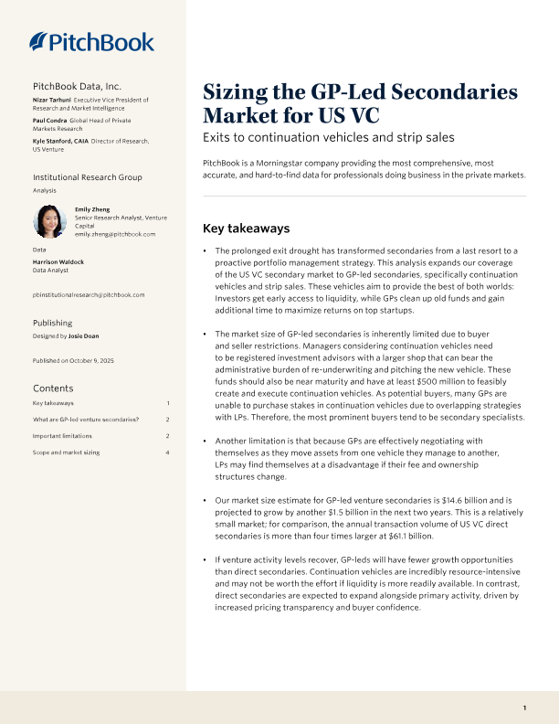 【PitchBook Data&Inc.】【202510】Sizing the GP-Led Secondaries Market for US VC-6页