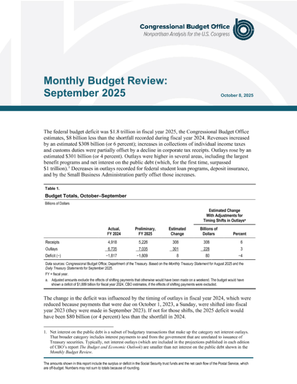 【Congressional Budget Office】【202509】Monthly Budget Review September 2025-8页