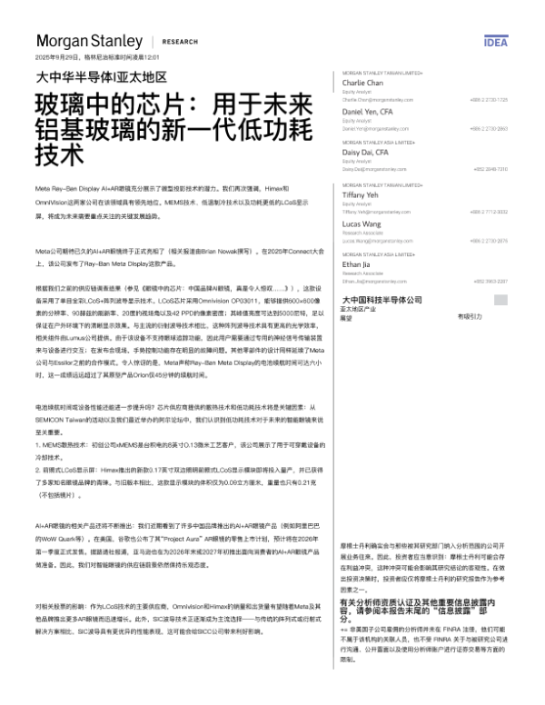 【Morgan Stanley】【202509】Chips in Glasses Next-generation low-power technology for future AI glasses-16页
