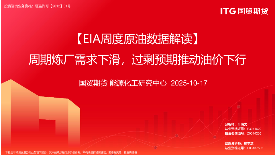 【国贸期货能源化工研究中心】【202510】EIA周度原油数据解读_周期炼厂需求下滑_过剩预期推动油价下行-16页