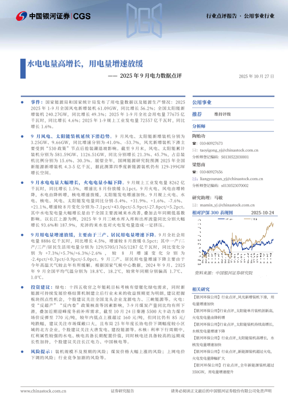 【银河证券】【202510】2025年9月电力数据点评:水电电量高增长,用电量增速放缓-3页