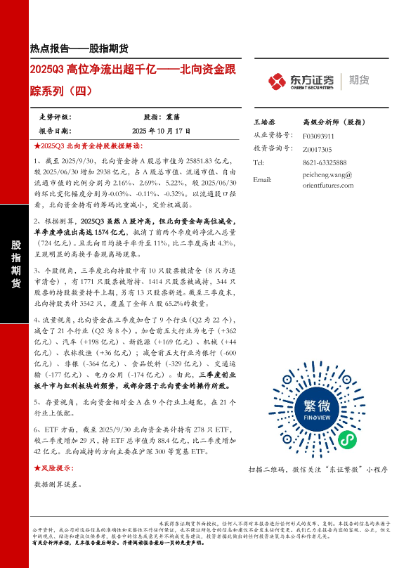 【东证期货】【202510】2025Q3高位净流出超千亿——北向资金跟踪系列(四)-10页