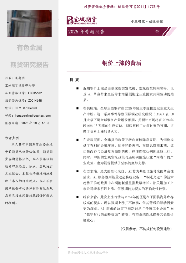 【宝城期货投资咨询部】【202510】铜价上涨的背后-10页