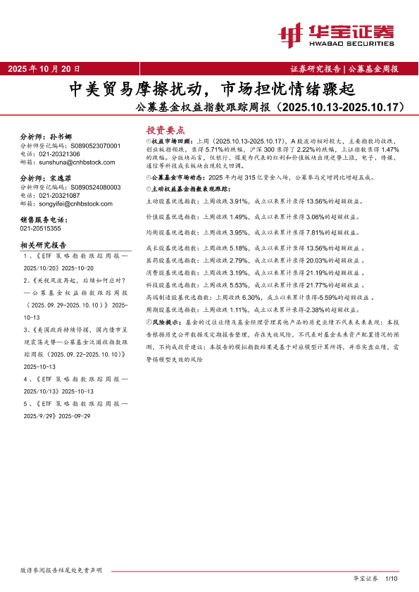 【华宝证券】【202510】公募基金权益指数跟踪周报(2025.10.13-2025.10.17)-10页
