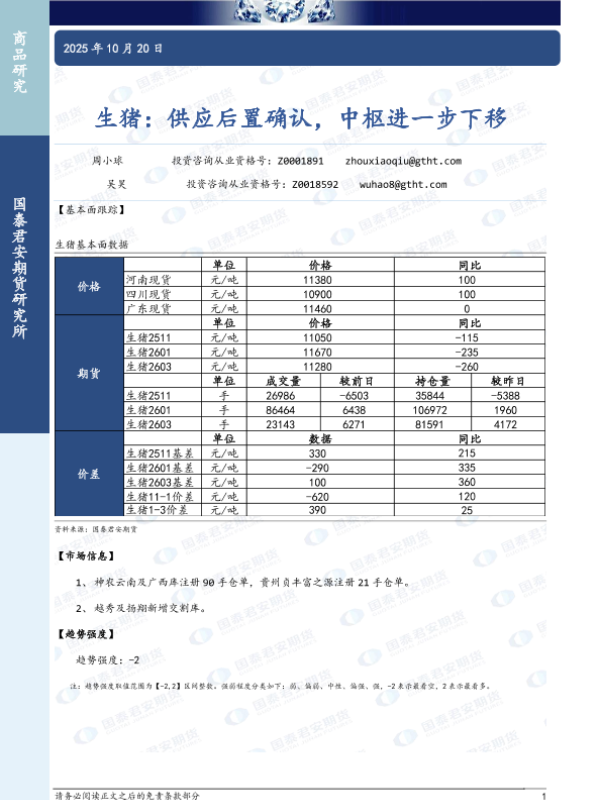 【国泰君安期货】【202510】生猪:供应后置确认,中枢进一步下移-2页
