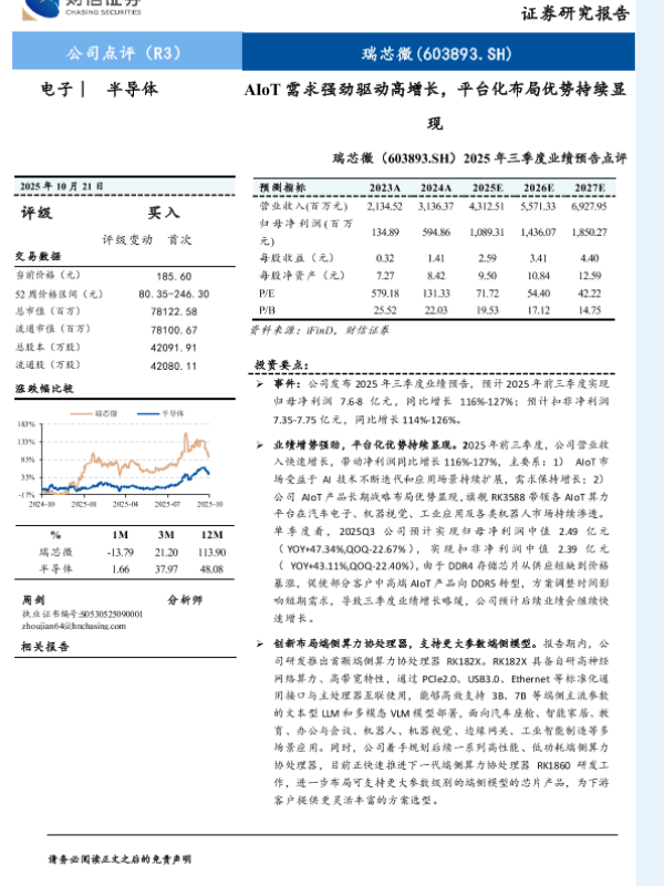 AIoT 半导体 瑞芯微 业绩预告 芯片设计