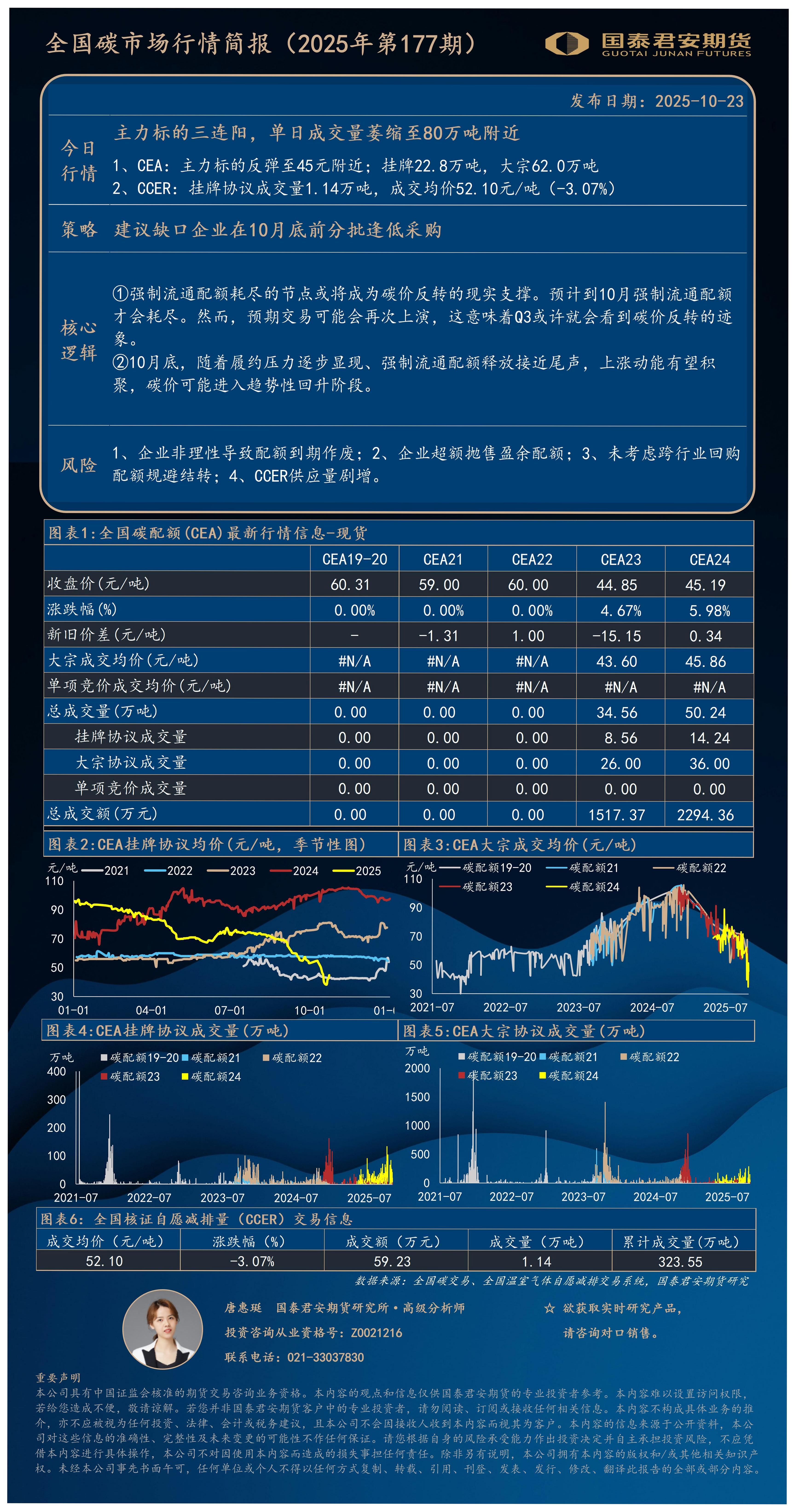【国泰君安期货】【202510】全國碳市場行情 簡報(2025年第 177期)-1页