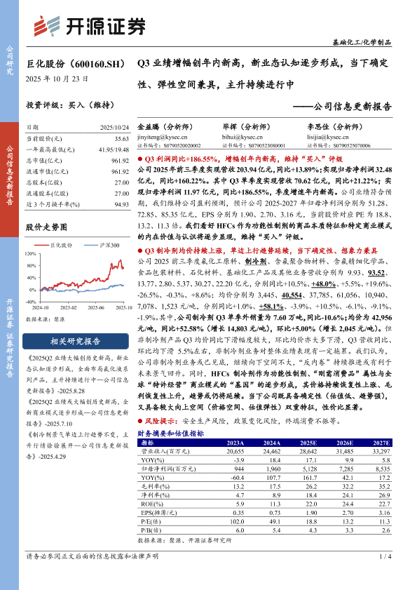 投资评级 新能源材料 业绩增长 氟化工 制冷剂