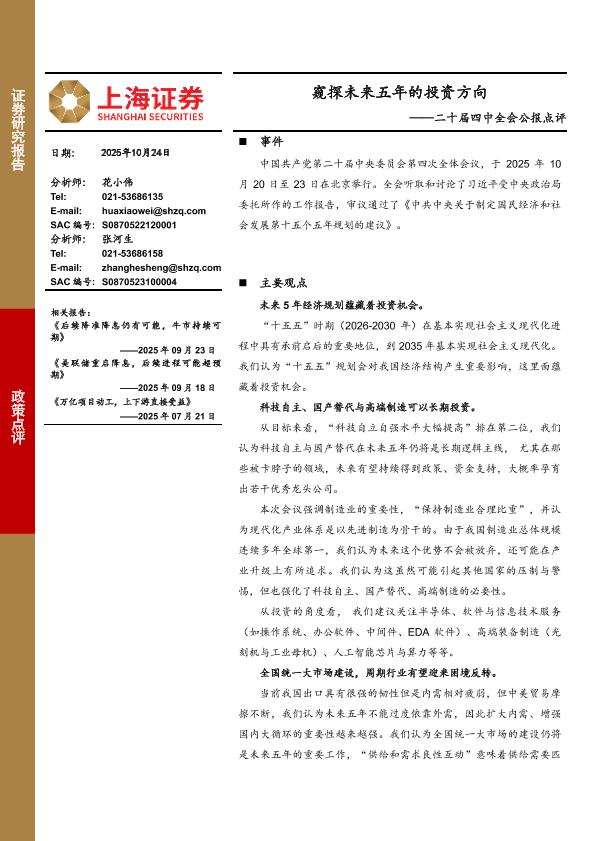 【上海证券】【202510】窥探未来五年的投资方向——二十届四中全会公报点评-3页