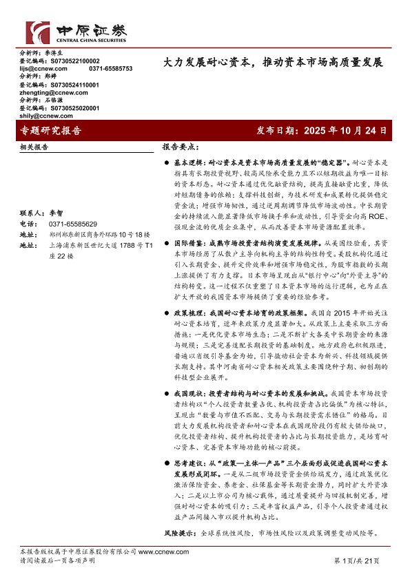 【中原证券】【202510】大力发展耐心资本,推动资本市场高质量发展-21页