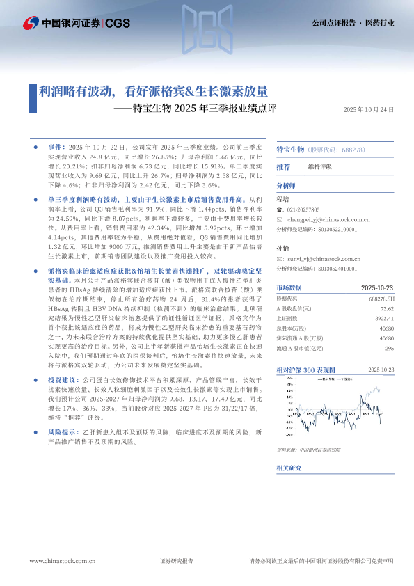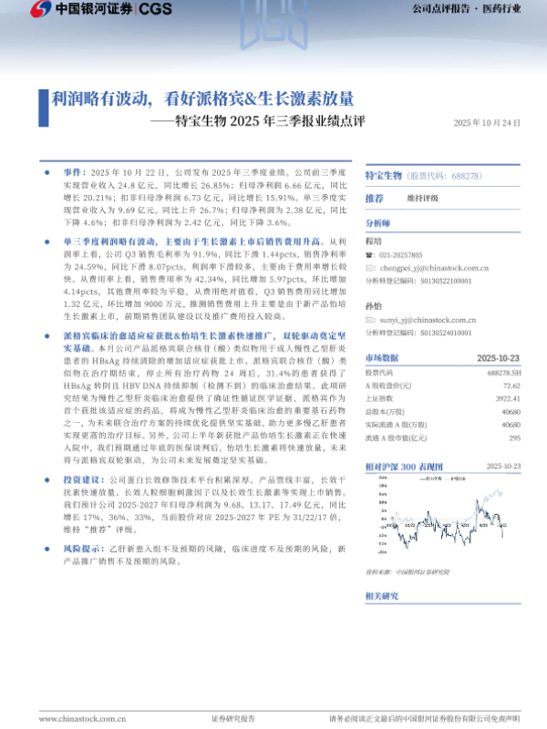 【银河证券】【202510】特宝生物 2025年三季报业绩点评——利润略有波动,看好派格宾&生长激素放量-4页