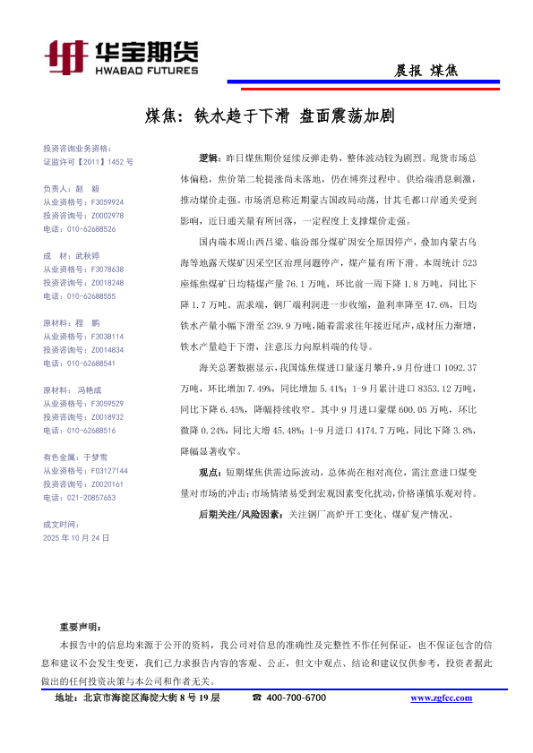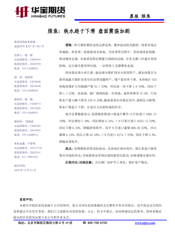 【华宝期货】【202510】煤焦_铁水趋于下滑_盘面震荡加剧-1页