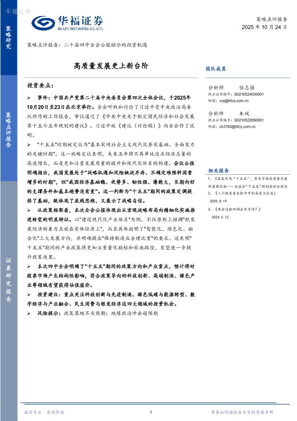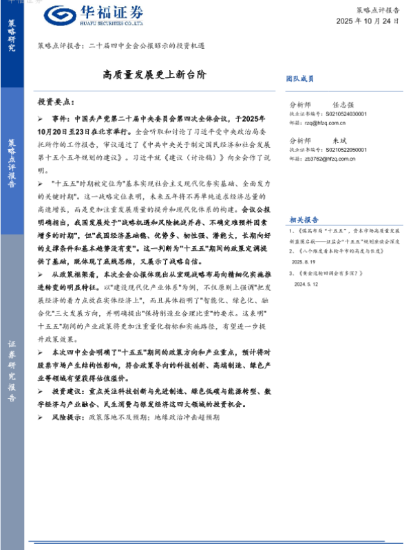 【华福证券】【202510】策略点评报告:二十届四中全会公报昭示的投资机遇-8页