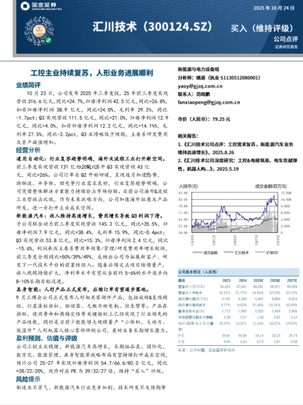 投资评级 新能源汽车 具身智能 业绩分析 工控主业