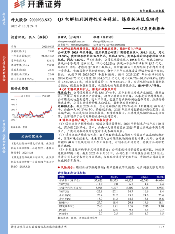 【开源证券】【202510】Q3电解铝利润弹性充分释放、煤炭板块筑底回升——公司信息更新报告-5页