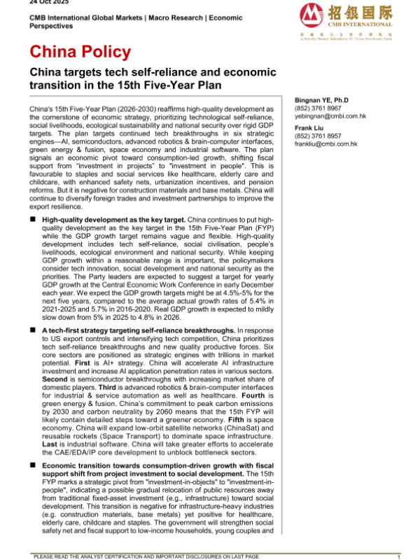 【CMB International Global Markets】【202510】China Policy Economic Perspectives- China targets tech self-reliance and economic transition in the 15th Five-Year Plan-7页