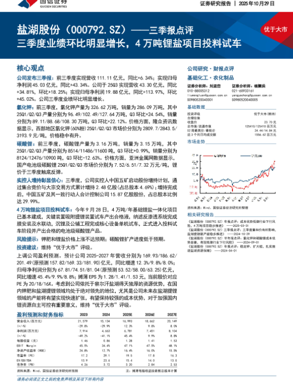 【国信证券】【202510】优于大市 盐湖股份(000792.SZ)——三季报点评-7页